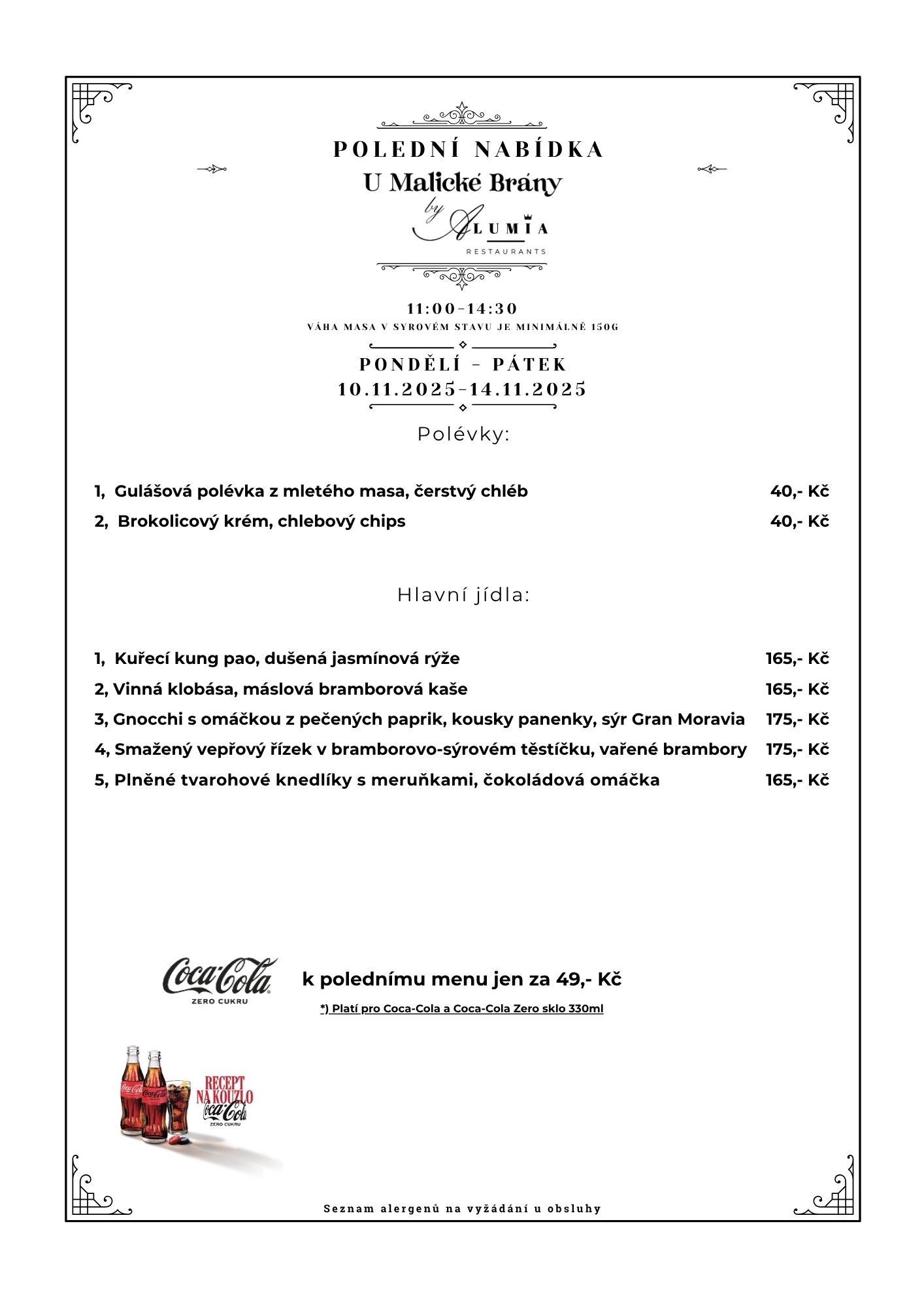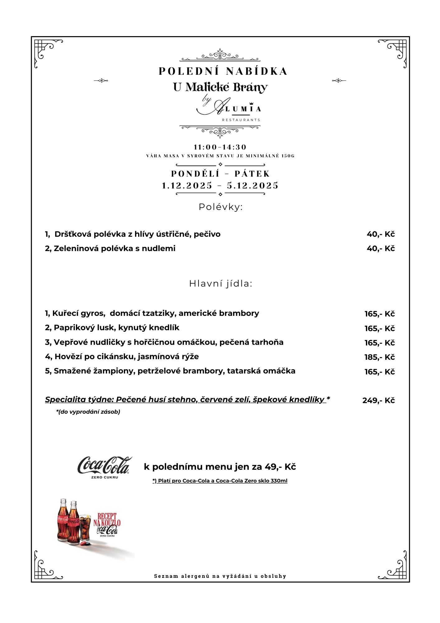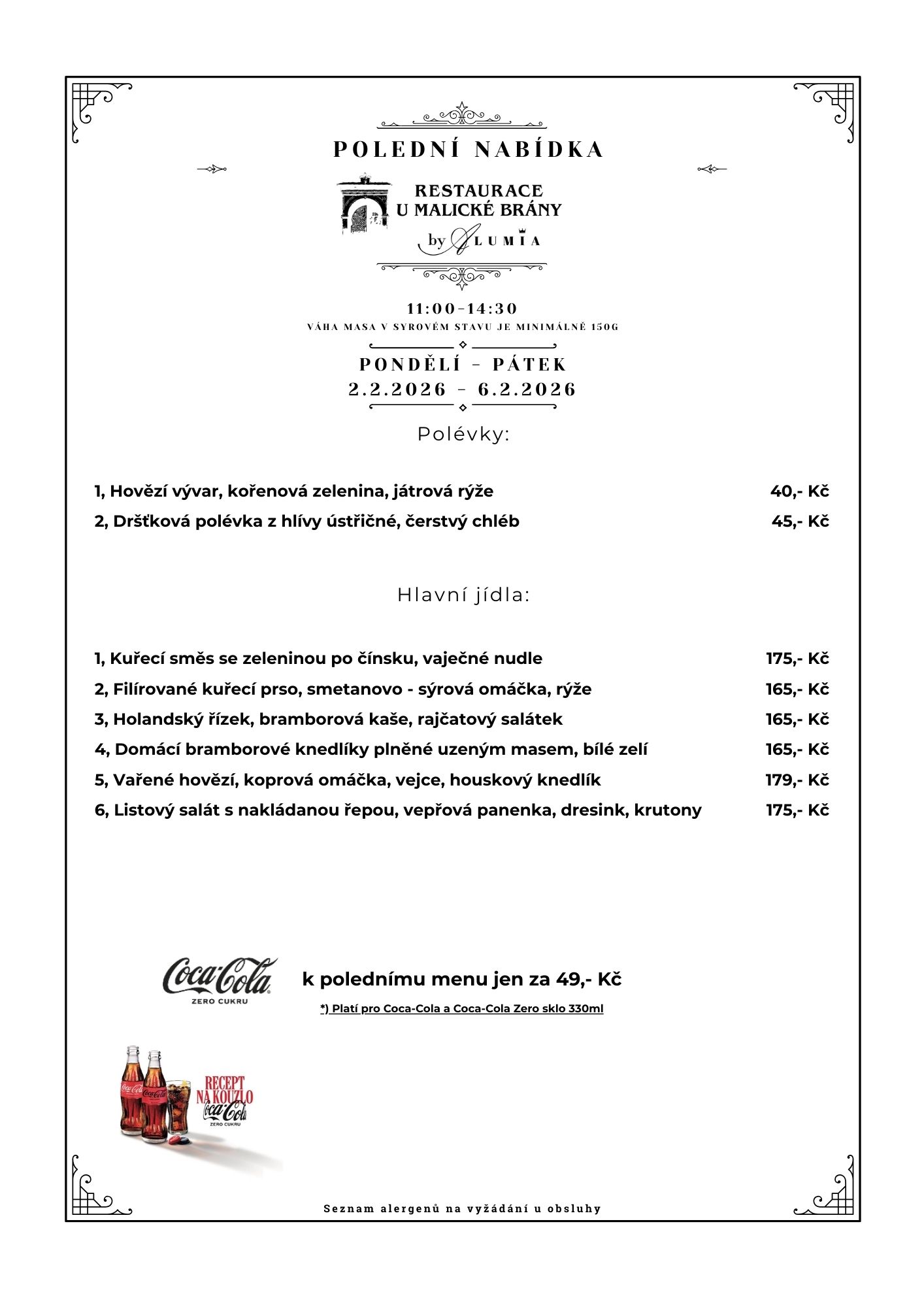Restaurace U Malické Brány je místem, kde se snoubí elegance a výjimečná gastronomie. Přijďte si vychutnat domácí Českou kuchyň nebo kousek Slovenska, Maďarska či oblíbené Itálie.